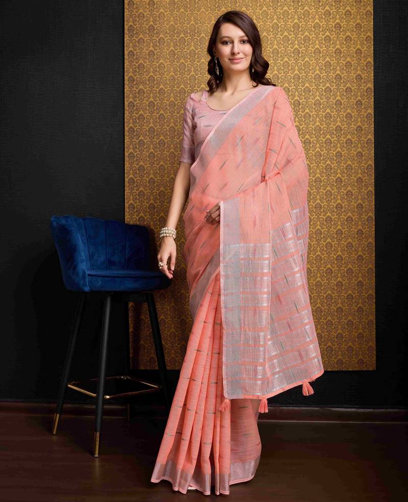 | Product Name | Peach Plain Organza Organza Sarees Saree With Blouse | |
