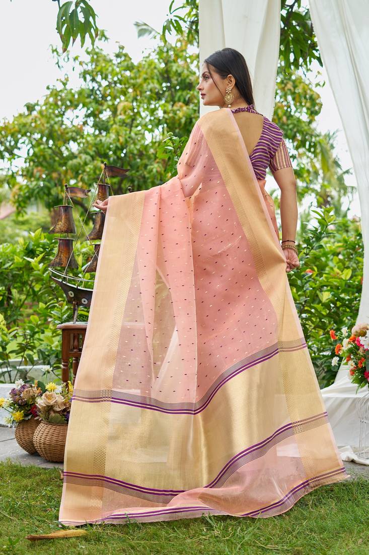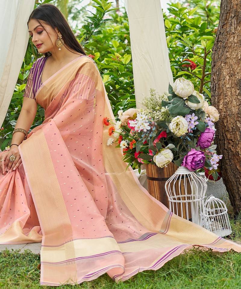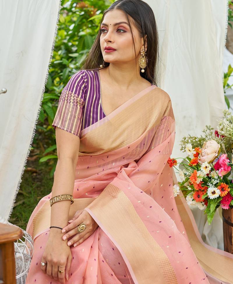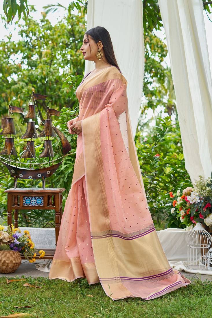 Pink plain silk silk-sarees saree with blouse