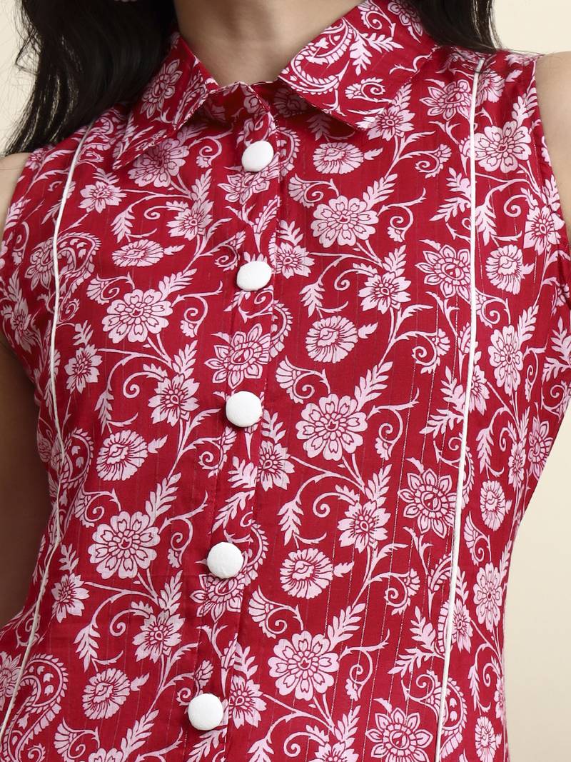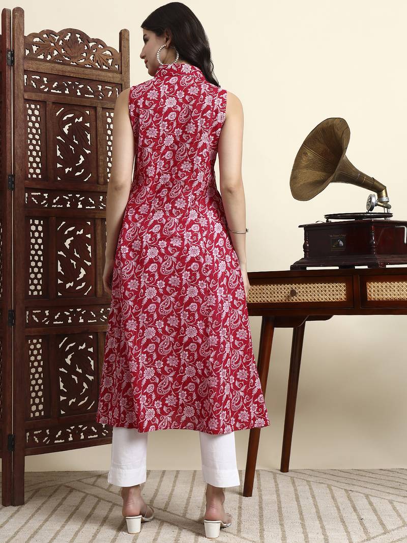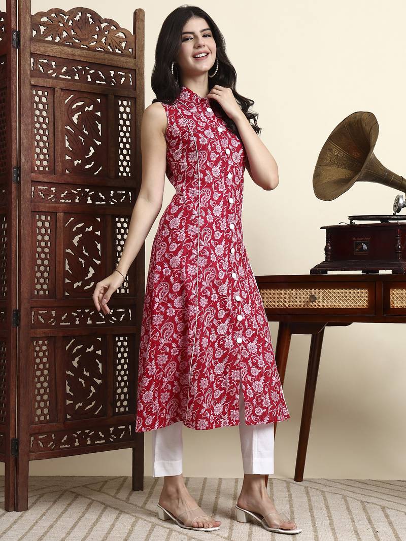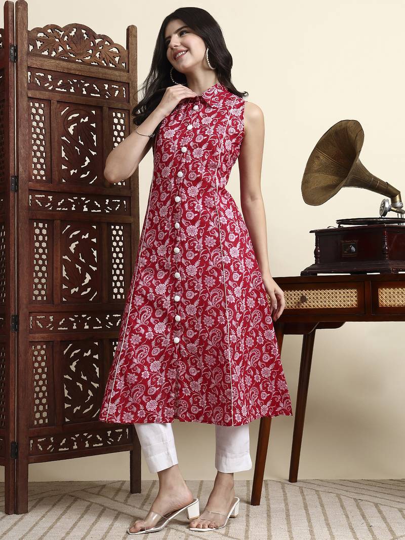 Product Description | Light Pink Pure Cotton Floral A Line Kurta Kurta Design Floral A Line Shape Front Slits Sleeveless Shrit Neck Calf Length Kurta Straight Him Machine Weave Pure Cotton Slip On Waist Size & Fit Material & Care Pure Cotton |
