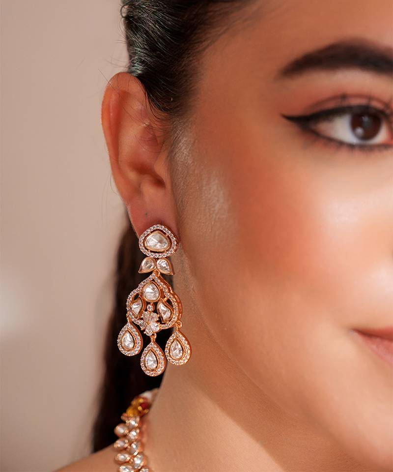Product Description | Featuring A Goldfinish Long Pendant Kundan Necklace Set. It Comes With A Pair Of Earrings. Perfect To Make A Statement In Any Wedding Or Festivities.