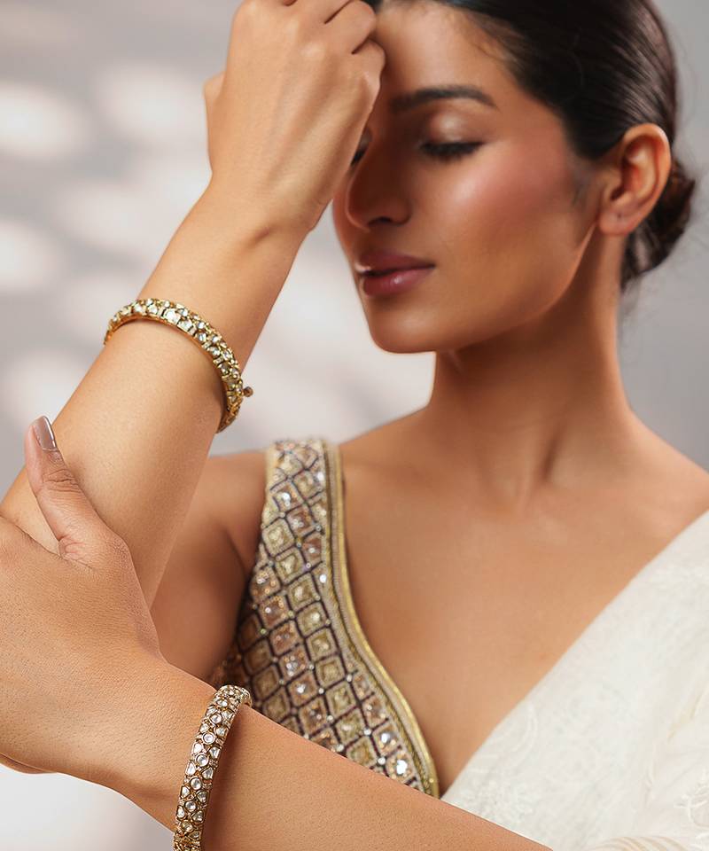 | Product Description | This Two Tone Plated Kundan Bangle Showcases Timeless Elegance And Traditional Artistry. Crafted With Intricate Detailing, It Features Classic Kundan Work Enhanced By A Striking Dual Tone Finish. Perfect For Weddings, Festive Occasions, Or Celebrations, It Adds A Regal Accent And Refined Sophistication To Ethnic And Fusion Ensembles.